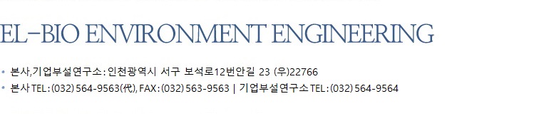EL-BIO ENVIRONMENT ENGINEERING | 본사, 기업부설연구소 : 인천광역시 보석로12번안길 23(청라동) (우)22766